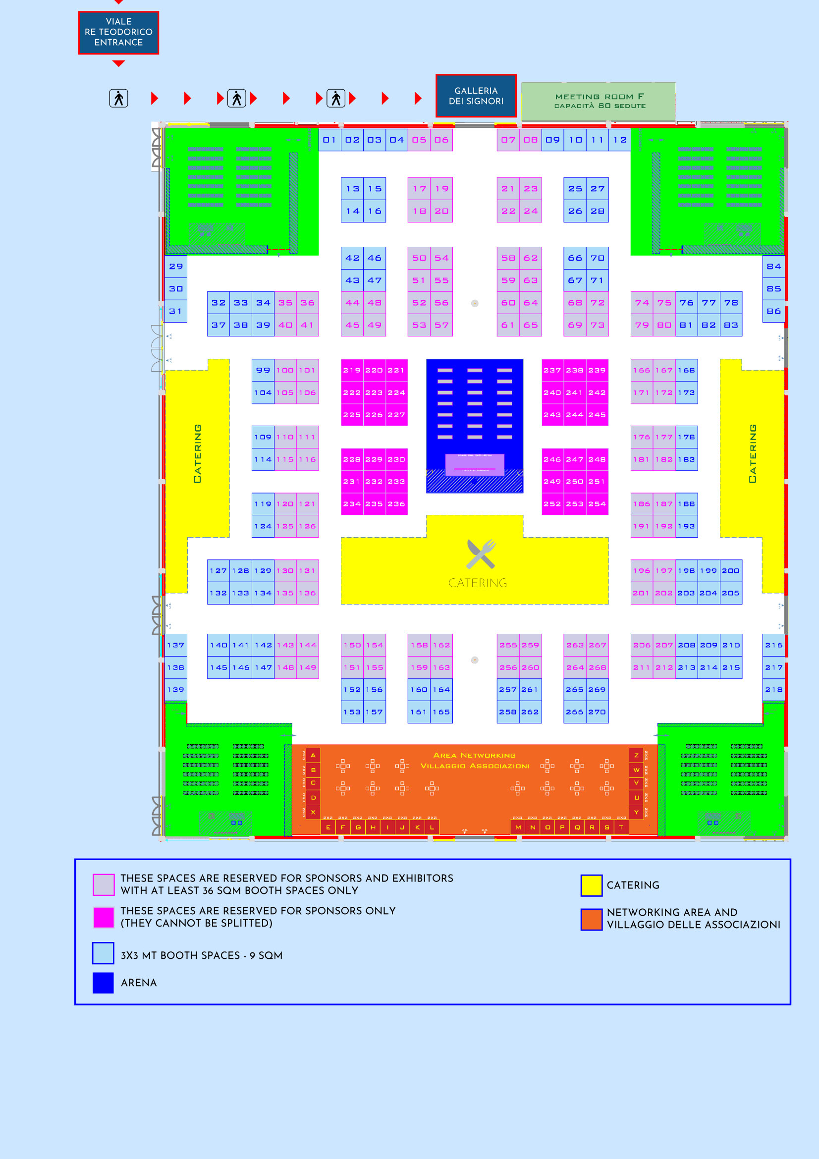 • the pink area in our exhibition floor plan is reserved to sponsors with at least 18 sqm booth space and exhibitors with at least 36 sqm booth space